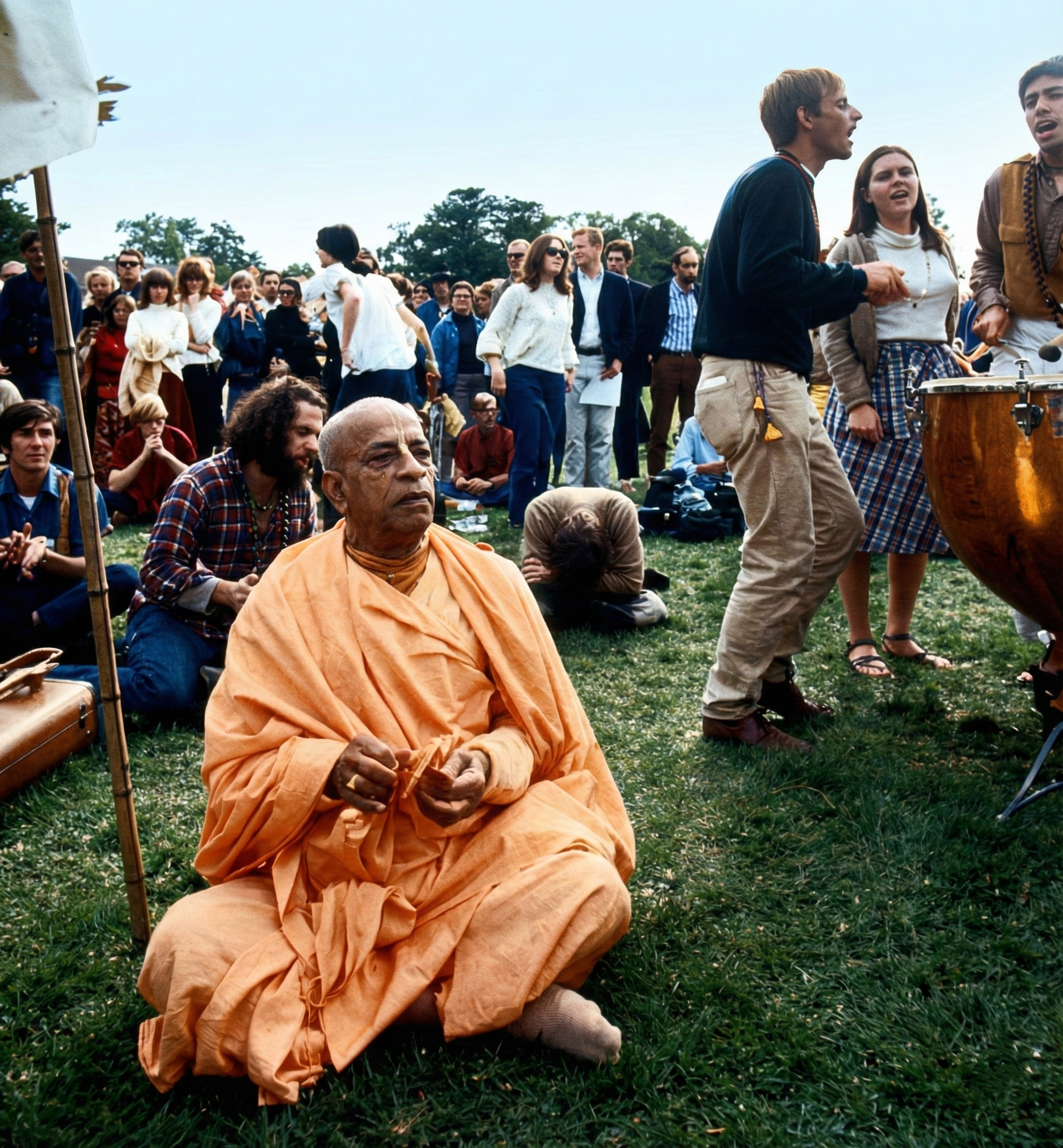 He sat under a tree in Tompkins Square Park and chanted the Hare Krishna mantra. This attracted many people and began the movement's growth in the West.
