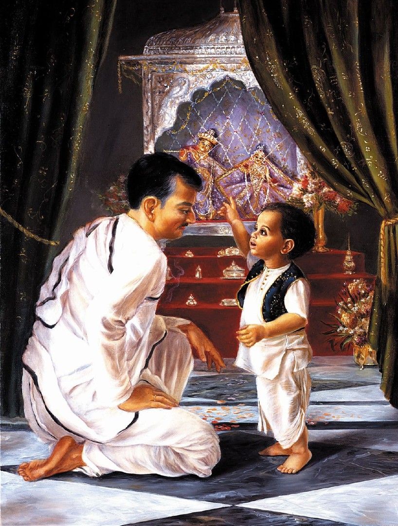 Srila Prabhupada was born on September 1, 1896, in Calcutta as Abhay Charan. His parents, Gour Mohan De and Rajani Devi, were ardent devotees of Lord Krishna. His father's only wish was that Abhay should become a devotee of Srimati Radharani.